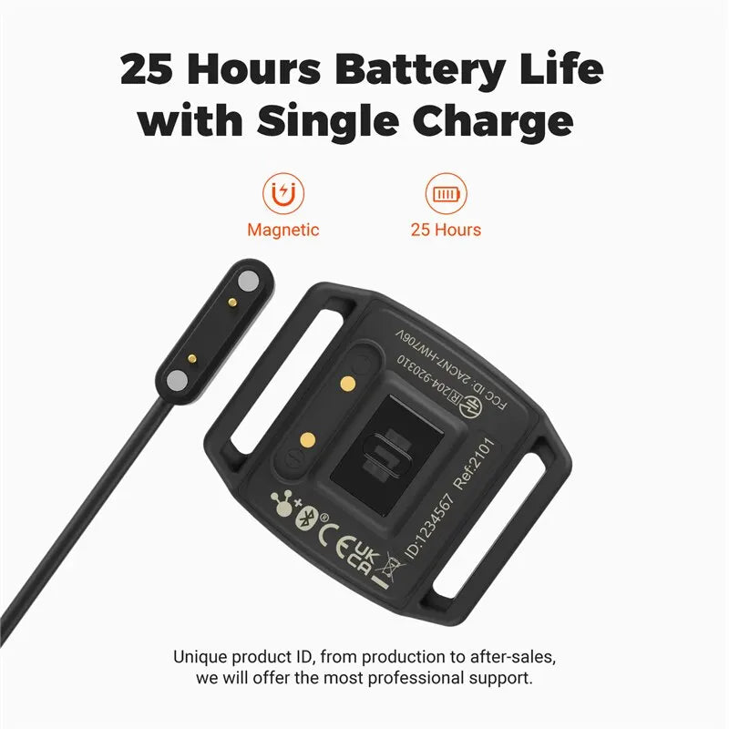 Using with a Rechargeable lithium battery ( 90 mAh), HW706 can last up to 20 hours of workout after each charging.